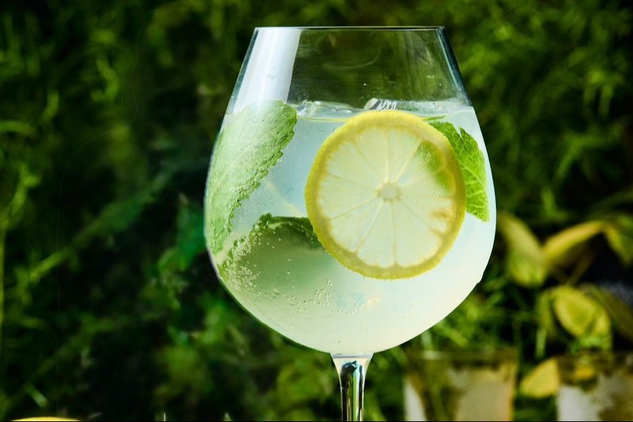 Limoncello, espumante Brut e rodela de limão-siciliano