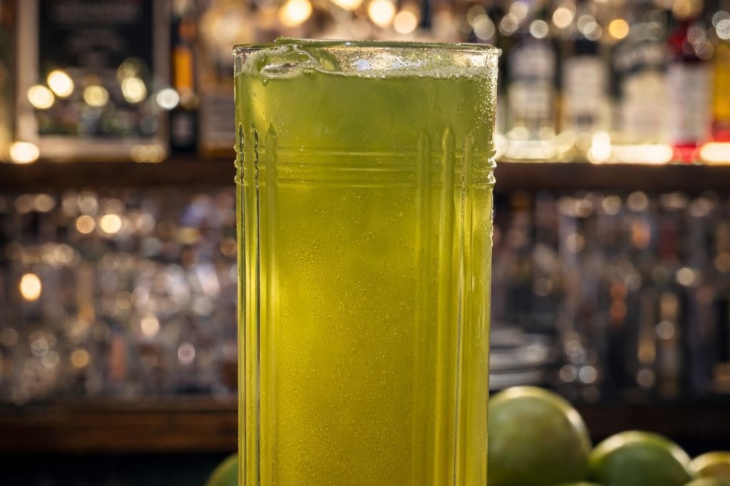 Suco de pepino, suco de limões taiti e siciliano, elderflower e água com gás